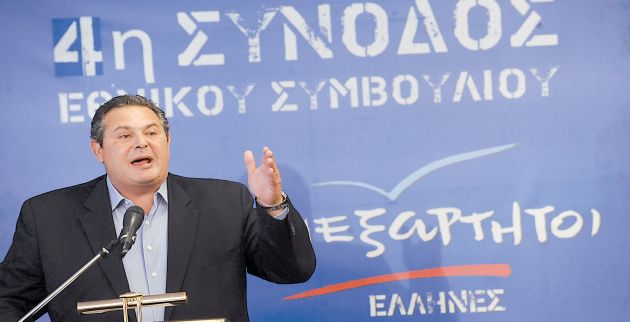 ΑΠΟΦΑΣΙΣΜΕΝΟΣ να σταματήσει τις αποχωρήσεις βουλευτών από το κόμμα του εμφανίστηκε ο Πάνος Καμμένος στη συνεδρίαση του Εθνικού Συμβουλίου των Ανεξάρτητων Ελλήνων, ενώ τους κάλεσε να «σπάσουν τις καρέκλες από το κόμμα και να βγουν στις γειτονιές». «Οποιος θέλει να διαπραγματευτεί με την εξουσία, ας φύγει τώρα κι εγώ θα του δώσω χαρτί καλής προϋπηρεσίας, για να προσκυνήσει τη Συγγρού, αν θέλει» ανέφερε στην ομιλία, ενώ συνέχισε την επίθεση κατά των βουλευτών που αποχώρησαν κάνοντας λόγο για «πόλεμο χωρίς κανέναν ηθικό ενδοιασμό», για «εξαγορά βουλευτών που φεύγουν χωρίς λόγο, αφού τη μία μέρα είναι μαζί μας και την επομένη κάνουν δήλωση αποχώρησης», την ώρα που «η κυβέρνηση ψάχνει 180 βουλευτές για να εκλέξει Πρόεδρο της Δημοκρατίας». Παράλληλα, ο πρόεδρος των ΑΝ.ΕΛ. άνοιξε τις πόρτες του κόμματός του προς όλους όσοι αντιτίθενται στο Μνημόνιο. Επίσης, ο πρόεδρος των Ανεξάρτητων Ελλήνων ανακοίνωσε την εκ βάθρων αναδιάρθρωση των οργανωτικών δομών του κόμματος, λέγοντας ότι αλλάζουν όλα και ξεκινούν από την αρχή.