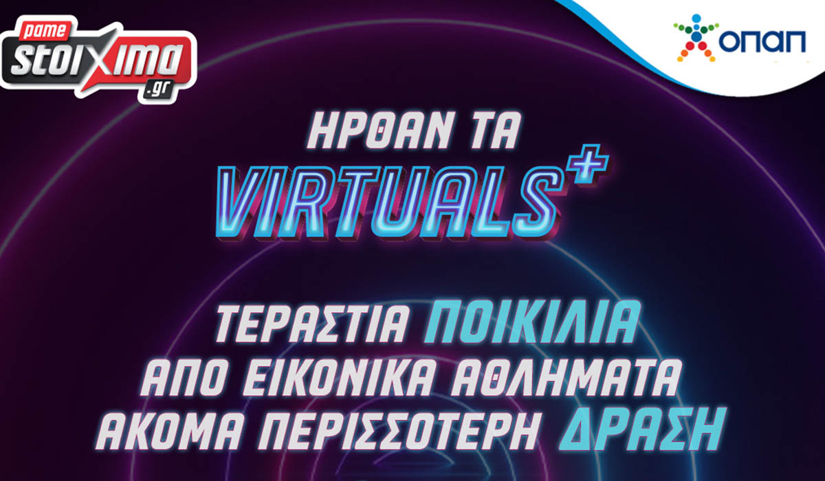 Η γκάμα των Virtuals+ περιλαμβάνει όλα τα διάσημα παιχνίδια των κορυφαίων παρόχων παγκοσμίως όπως, Greek Matchday, English Matchday, Football Greek Single, Football Greek League, Football English League, Football Italian League και NBA last 60.