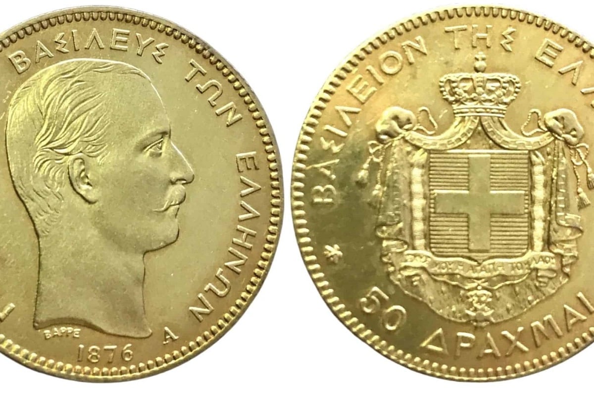 Μια ιστορική, για τα ελληνικά δεδομένα, δημοπρασία έλαβε χώρα στην Ελβετία, στις 17 Νοεμβρίου, στην οποία μεταξύ άλλων δημοπρατήθηκαν και ελληνικά σπάνια νομίσματα. Το νόμισμα που «έκλεψε την παράσταση» ήταν αυτό των 50 δραχμών του 1876. Το συγκεκριμένο ελληνικό νόμισμα κόπηκε το 1876 στο νομισματοκοπείο των Παρισίων σε 182 αντίτυπα. Ήταν τότε μία πρόθεση του Ελληνικού κράτους να προβάλει εκσυχρονισμό και να δείξει πως ακολουθούσε τα ευρωπαϊκά πρότυπα κοπής μεγάλων χρυσών νομισμάτων.