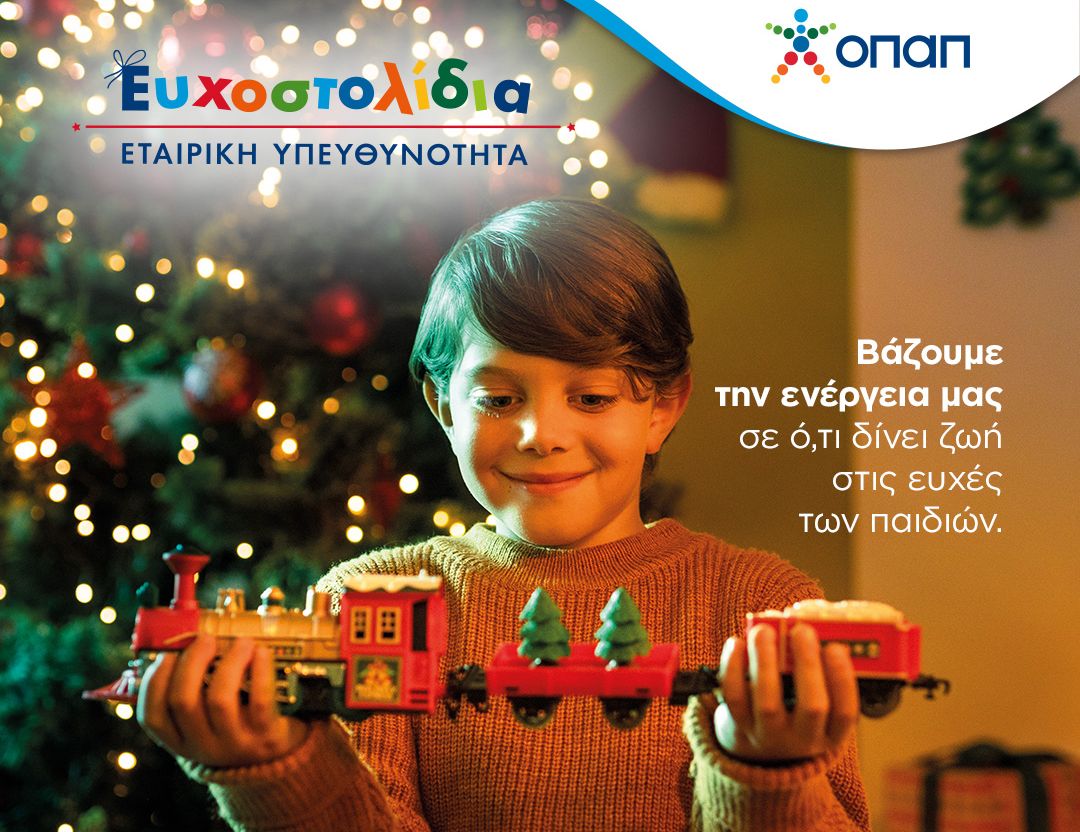 Όλοι μαζί, για ακόμη μια χρονιά, ενώνουμε διαδικτυακά τις δυνάμεις μας και εκπληρώνουμε τις ευχές χιλιάδων παιδιών που έχουν ανάγκη, μέσα από τα Ευχοστολίδια. Η πρωτοβουλία του ΟΠΑΠ εφέτος έχει στόχο να κάνει πραγματικότητα όλες τις ευχές των παιδιών από τους οργανισμούς «Κιβωτός του Κόσμου» και «Το Χαμόγελο του Παιδιού».