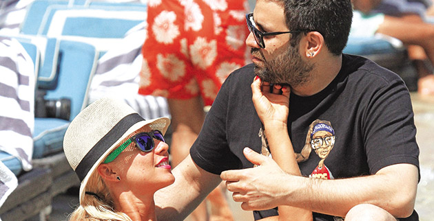 Η εκπάγλου καλλονής μελαχρινή, που χρειάστηκε τη βοήθεια σωσιβίου για να κολυμπήσει, μόλις αντιλήφθηκε την παρουσία του φακού άρχισε να κάνει… τσαχπινιές. Το ζευγάρι δεν είχε πάντως κανένα πρόβλημα να ανταλλάξει δημοσίως φιλιά, αδιαφορώντας για τα βλέμματα που «καρφώνονταν» πάνω του.