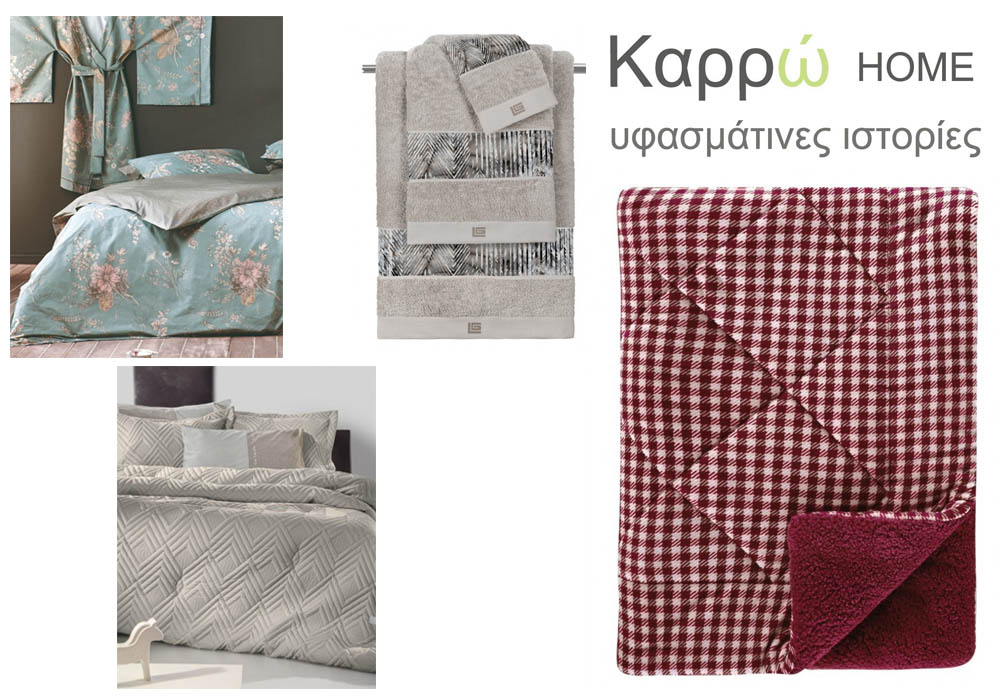 Το σπίτι αποτελεί ένα ζεστό καταφύγιο για τον καθένα. Η αρμονία, οι καθαρές γραμμές και η καλαίσθητη διακόσμηση βοηθούν ώστε ο προσωπικός αυτός χώρος να προσφέρει ηρεμία και χαλάρωση. Ειδικά το υπνοδωμάτιοέχει την προσωπική σας υπογραφή καθώς είναι το σημείο όπου ξεκουράζεστε και ανασυγκροτείτε τις δυνάμεις σας. Αλλάζοντας κάποιες λεπτομέρειες σε αυτό όπως τα λευκά είδη, ταυτόχρονα αλλάζετε και τη διάθεσή σας. Τα σχέδια του Καρρώ ΗΟΜΕ αποτελούν πηγή έμπνευσης χάρη στην ποικιλία που μπορείτε να βρείτε στα καλύτερα brands.