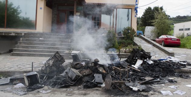 Παρανάλωμα του πυρός έγινε ο εξοπλισμός του Α.Τ. Ιερισσού από τους κατοίκους που τον μετέφεραν έξω από το κτίριο και του έβαλαν φωτιά. 2,3. Με οδοφράγματα και οργισμένες διαμαρτυρίες απάντησαν οι κάτοικοι της Ιερισσού στη σύλληψη των δύο συγχωριανών τους.