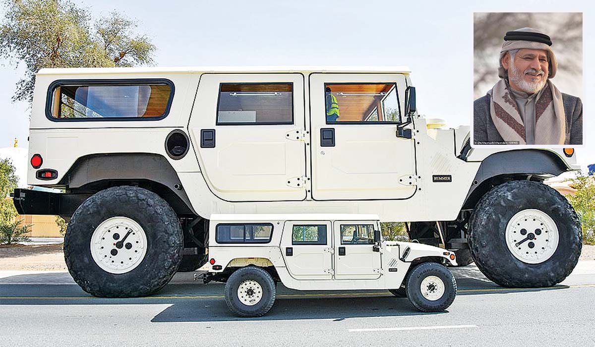 Βάλθηκε να τρελάνει τον κόσμο «πωρωμένος» με τα αυτοκίνητα 4×4 σεΐχης από τα Ηνωμένα Αραβικά Εμιράτα, καθώς κατασκεύασε γιγάντιο τζιπ Hummer με ύψος διώροφου κτιρίου!