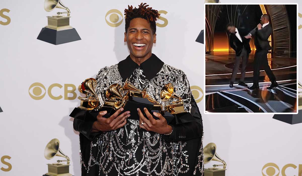 Ο παρουσιαστής της βραδιάς Τρέβορ Νόα, κατά τη διάρκεια της οποίας προβλήθηκε βιντεοσκοπημένο μήνυμα του Βολοντίμιρ Ζελένσκι, στο οποίο ο πρόεδρος της Ουκρανίας ζήτησε βοήθεια «με οποιονδήποτε τρόπο», δεν παρέλειψε να «τσουρουφλίσει» τον Γουίλ Σμιθ για το χαστούκι στον κωμικό Κρις Ροκ στα Οσκαρ. Είπε αστειευόμενος «δεν βάζουμε ονόματα ανθρώπων στο στόμα μας», αναφερόμενος σε όσα είπε ο Σμιθ στον Ροκ. Νωρίτερα ο Λεβάρ Μπάρτον έσπευσε να προειδοποιήσει ότι ο επόμενος παρουσιαστής ήταν… κωμικός, όπως ο Ροκ. Αμέσως μετά ο Νέιτ Μπαργκάτζε εμφανίστηκε φορώντας… κράνος.