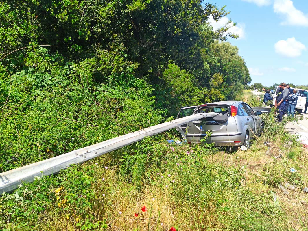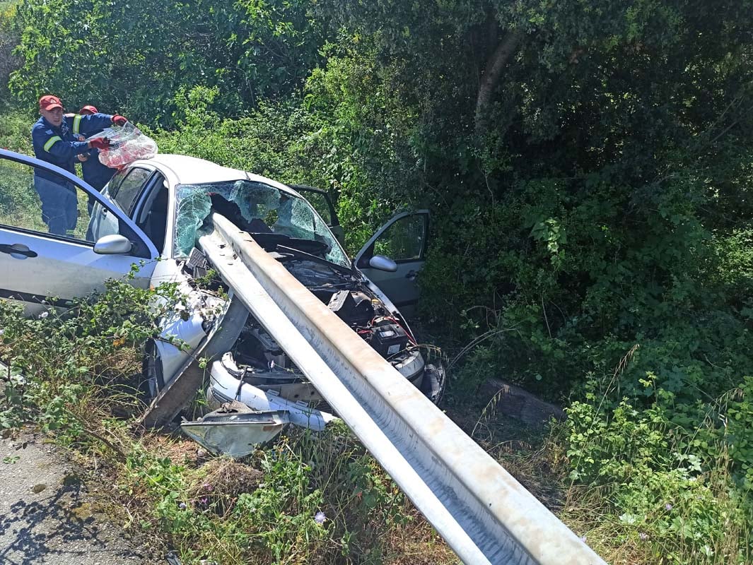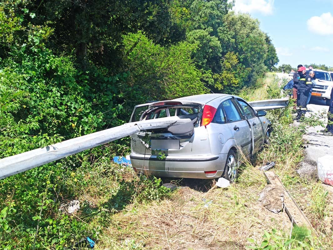 Όπως αναφέρει το karvasaras.gr ένα ΙΧ αυτοκίνητο εξετράπη της πορείας του και προσέκρουσε στις προστατευτικές μπάρες, ενώ αυτές εμβόλισαν το όχημα από τη σφοδρότητα της πρόσκρουσης.