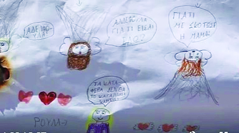 Την ίδια ώρα, συγκλονίζει η ζωγραφιά που άφησε έξω από το σπίτι της οικογένειας Δασκαλάκη μια 12χρονη φίλη και συμμαθήτρια της Τζωρτζίνας. Σε αυτήν απεικονίζονται και τα τρία παιδιά ως αγγελάκια, αλλά και η μητέρα τους Ρούλα. Η Μαλένα και η Ιριδα ρωτάνε την Τζωρτζίνα: «Αδελφούλα, γιατί είσαι εδώ;» Και εκείνη απαντά: «Γιατί με σκότωσε η μαμά». Η Ρούλα φαίνεται να λέει: «Τα κατάφερα, δεν με κατάλαβε κανείς». Κάτω έχει και μια αφιέρωση που γράφει: «Κατερίνα, η φίλη της Τζωρτζίνας από το σχολείο, 12 ετών. Μου λείπουν όλες πάρα πολύ».
