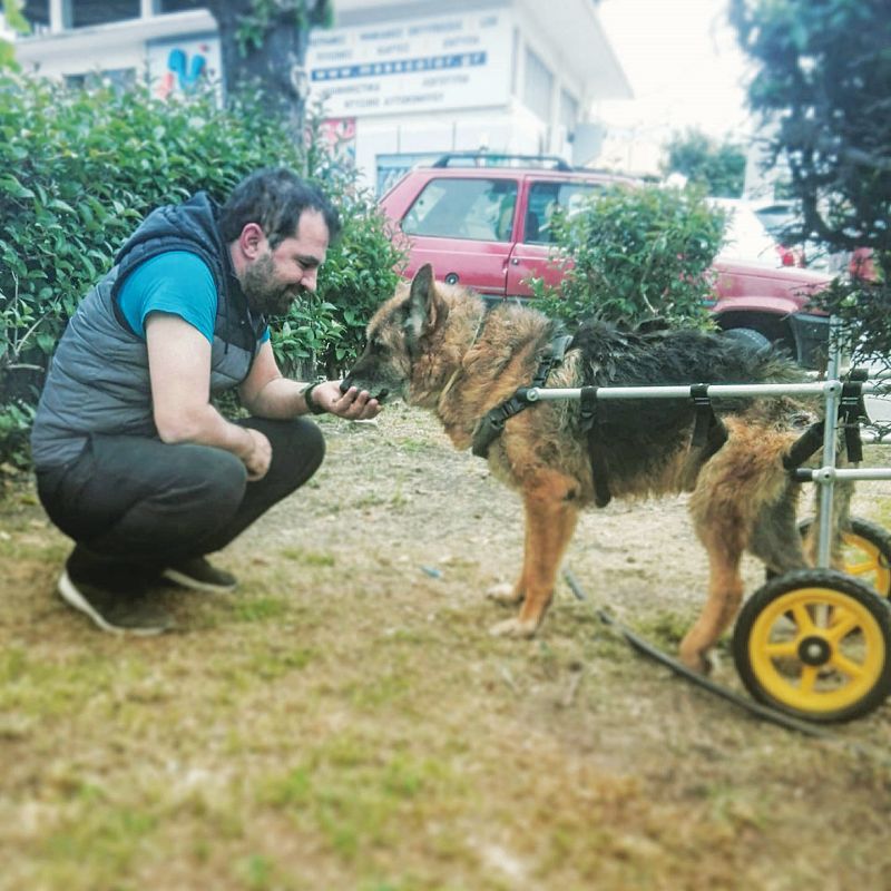 «Ήταν το 2015, σε μια περίεργη φάση της ζωής μου, καθώς είχα πάθει κατάθλιψη λόγω ενός προσωπικού προβλήματος. Δεν μου άρεσε και η δουλειά του υδραυλικού, που έκανα από το 2000. Εκείνη την περίοδο, επειδή είχα κλειστεί στον εαυτό μου, έβλεπα πολλά βιντεάκια με διασώσεις ζώων. Επεσα σε έναν Λατινοαμερικανό που έφτιαχνε αναπηρικά αμαξίδια για ζώα από σωλήνες ύδρευσης και, ως υδραυλικός που ήμουν, ενθουσιάστηκα» περιγράφει στην «Espresso».