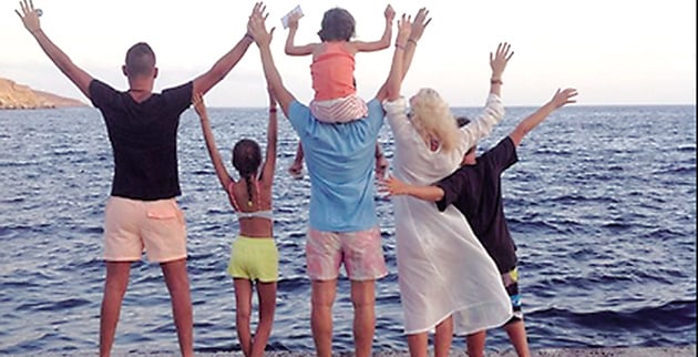 Η «Ωραία Ελένη» της Κάντζας, που απολαμβάνει τις διακοπές της στην Ανδρο, είπε να συμπεριλάβει αυτή τη φορά στο φωτογραφικό άλμπουμ του καλοκαιριού εκείνους που την κάνουν πραγματικά ευτυχισμένη. Ποζάροντας όλοι «πλάτη», στήνονται στον φακό με φόντο τη θάλασσα και με τα χέρια τους ψηλά, κάνοντας εικόνα το γνωστό τραγούδι του Μιχάλη Χατζηγιάννη. Εκτός από την Ελένη Μενεγάκη και τον Μάκη Παντζόπουλο, στο ίδιο καρέ βλέπουμε τα τρία παιδιά της παρουσιάστριας, τον Αγγελο, τη Λάουρα και τη Βικτόρια (την οποία μάλιστα έχει στους ώμους του ο σύντροφος της παρουσιάστριας), ενώ αριστερά ποζάρει και ο αδερφός της Θοδωρής Μισόκαλος.