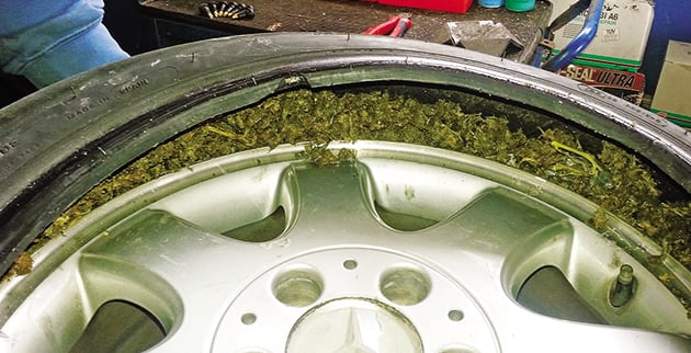 Ο λόγος ήταν ότι στους τέσσερις τροχούς της η νταλίκα με τις αλβανικές πινακίδες έκρυβε περίπου 20 κιλά χασίς. Οι άνδρες της Δίωξης Ναρκωτικών Ιωαννίνων το γνώριζαν, γι’ αυτό είχαν θέσει υπό παρακολούθηση το όχημα. Ομως, όταν είδαν να σκάει το ένα λάστιχο και ποσότητα του ναρκωτικού να σκορπίζεται στην άσφαλτο, δεν πίστευαν στα μάτια τους.