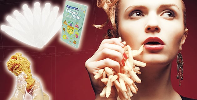 Για τέτοιες… άνισες μάχες μια νοτιοκορεατική εταιρία δημιούργησε τα Finger Naps. Πρόκειται για ειδικά «προφυλακτικά δακτύλων», δηλαδή πλαστικές θήκες που καλύπτουν τον δείκτη και τον αντίχειρα και σας βοηθάνε να καταναλώσετε τηγανητά, ζουμερά ή λαδερά τρόφιμα χωρίς να χρειάζεται μόλις ολοκληρώσετε το γεύμα σας να επισκεφτείτε το μπάνιο για να πλύνετε τα χέρια σας. Η εταιρία τα περιγράφει ως «μίνι γάντια μιας χρήσης» που προσαρμόζονται στις άκρες των δαχτύλων για να τα κρατάνε καθαρά όση ώρα καθαρίζετε τον αστακό σας, απολαμβάνετε κομμάτι κομμάτι την πίτσα σας, γεύεστε ένα σοκολατένιο ντόνατ ή τσιμπολογάτε πατατάκια.