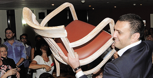 Είδε πως υπήρχε μια κενή πολυθρόνα που προοριζόταν για κάποιον επίσημο και χωρίς δεύτερη σκέψη ο πανύψηλος υπουργός σήκωσε στα χέρια του το βαρύ κάθισμα -προς έκπληξη όλων- και το μετέφερε χαμογελαστός μερικά μέτρα πιο πέρα, προς την ηλικιωμένη κυρία, η οποία τον ευχαρίστησε, μόλις ξεπέρασε την ευχάριστη έκπληξη.