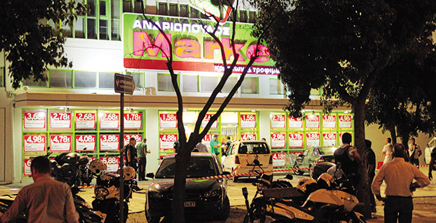 Λίγη ώρα νωρίτερα οι δύο οπλοφόροι είχαν εισβάλει σε υπεραγορά κρεάτων, που βρίσκεται στη συμβολή των οδών Αγίου Παύλου και Κηφισού. Οι δύο ληστές, που είχαν καλυμμένα τα πρόσωπά τους, άρπαξαν μεγάλο χρηματικό ποσό από το ταμείο και βγήκαν από το κατάστημα. Ομως οι αστυνομικοί που τους είχαν ήδη αντιληφθεί και είχαν πάρει θέση κάλυψης, τους ζήτησαν να παραδοθούν φωνάζοντας «Αστυνομία, ακίνητοι»!