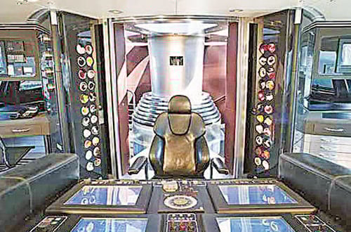 Το κότερο διαθέτει πέντε μεγάλα υπνοδωμάτια υπερπολυτελείας για τους φιλοξενουμένους στο κάτω κατάστρωμα, οκτώ καμπίνες για το 18μελές πλήρωμα και μία καμπίνα με ιδιωτικό χώρο για ηλιοθεραπεία στο πάνω, όλα με άμεση πρόσβαση στον χώρο διακυβέρνησης που θυμίζει…Star Trek!