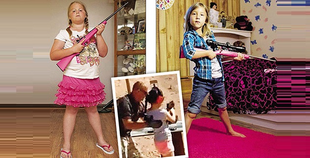 Το ροζ χρώμα της αθωότητας, που συνήθως πάει πακέτο με τα κοτσιδάκια και τις χαριτωμένες φουστίτσες, στις ΗΠΑ συνδυάζεται μ’ έναν τρόπο που αιφνιδιάζει, με πραγματικά τουφέκια διαμετρήματος 22 χιλιοστών. Με τις ευλογίες και το καμάρι των γονιών τους, μικρά κοριτσάκια αποκτούν το πρώτο τους τουφέκι και στη συνέχεια στήνονται μπροστά στον φωτογραφικό φακό για να απαθανατιστεί η πρώτη τους επαφή με το όπλο, όπως η πρώτη φορά που κάνουν ποδήλατο χωρίς βοηθητικές ή η πρώτη φορά που κάνουν μπάνιο στη θάλασσα χωρίς μπρατσάκια.