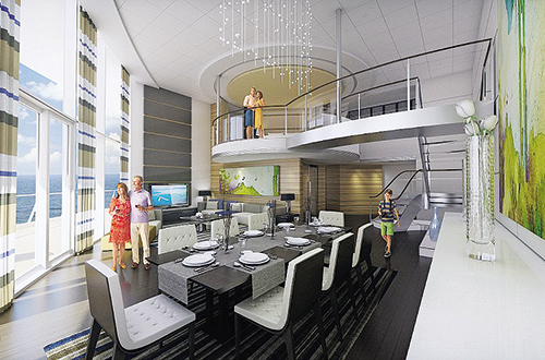 Εκατόν πενήντα τετραγωνικά πολυτέλειας, απλωμένα σε δύο επίπεδα, με γυάλινους τοίχους που επιτρέπουν ανεμπόδιστη θέα στον ωκεανό! Αυτή είναι η Βασιλική Σουίτα του πλωτού παλατιού «Quantum of the Seas». Η μεζονέτα των θαλασσών διαθέτει δύο μπάνια, γκαρνταρόμπα, καθιστικό, θερμαινόμενη πισίνα, τραπεζαρία και αίθουσα προβολών για πριβέ κινηματογραφικές προβολές. Μόνο… 10.700 ευρώ κοστίζει η διαμονή κατ’ άτομο σε αυτή τη γυάλινη πλωτή βίλα.