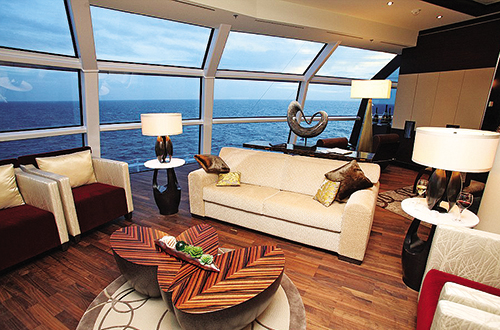 Κυρίαρχο είναι και πάλι το γυαλί στην πολυτελή πρόταση για διαμονή στα συνήθως 11ήμερα ταξίδια που πραγματοποιεί το κρουαζιερόπλοιο «Celebrity Reflection». Το πιο εντυπωσιακό στοιχείο στη Reflection Suite των 150 τ.μ. είναι το πανάκριβο τηλεσκόπιο στο μπάνιο της πλωτής έπαυλης, η οποία -μεταξύ άλλων πολυτελών στοιχείων- διαθέτει βεράντα 20 τετραγωνικών με θέα στον ωκεανό, τραπεζαρία δέκα ατόμων και γυμναστήριο. Η κρεβατοκάμαρα, που υπόσχεται τον πιο ονειρεμένο ύπνο, είναι ρυθμιζόμενη! Το κρεβάτι ανεβοκατεβαίνει με τηλεκοντρόλ. Το ταξίδι σε αυτό το «όνειρο» κοστολογείται στα 14.000 το άτομο!