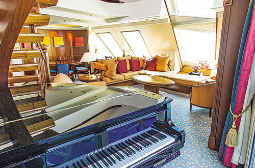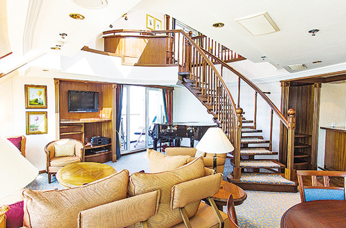 Η σουίτα Owner’s Suite του κρουαζιερόπλοιου «Μαρίνα» έχει κάτι που δεν έχουν όλες οι άλλες! Πολλά από τα στοιχεία που την κοσμούν έχουν την υπογραφή διασήμων, όπως είναι η επίπλωσή της, που φέρει την υπογραφή του οίκου Ralph Lauren Home, ενώ όλος ο εξοπλισμός του μπάνιου είναι Bvlgari. Τα 185 τ.μ. Πολυτέλειας, που διαθέτουν ακόμη και πιάνο (!), μπορεί να τα απολαύσει κάποιος πληρώνοντας κάτι περισσότερο από 10.000 ευρώ για ένα εβδομαδιαίο ταξίδι.