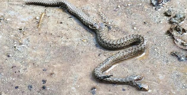 «Πάγωσε» ένας περαστικός που είχε βγάλει βόλτα τον σκύλο του στην παραλιακή περιοχή Μηνιές της Κεφαλλονιάς (μόλις πέντε χιλιόμετρα έξω από το Αργοστόλι) όταν βρέθηκε αντιμέτωπος με ένα φίδι εντελώς διαφορετικό από τα συνηθισμένα! Το παράξενο ερπετό είχε δύο κεφάλια, όπως φαίνεται στις φωτογραφίες που έστειλε στην ιστοσελίδα kefalonizw.com, αφού πρώτα κατάφερε να το σκοτώσει, χωρίς -όπως ο ίδιος είπε- να ξέρει αν αυτό είναι καλό η κακό σημάδι!