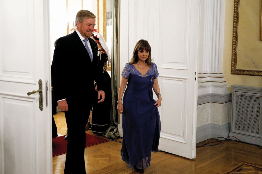 Η Μάξιμα της Ολλανδίας έψαξε, βρήκε και επέλεξε τον Ελληνα σχεδιαστή Κωσταρέλο για το εντυπωσιακό βελούδινο φόρεμα της δεξίωσης στο Προεδρικό Μέγαρο. Η οικοδέσποινα, όμως, η Πρόεδρος Κατερίνα Σακελλαροπούλου δεν μπήκε καν σε τέτοιο κόπο.