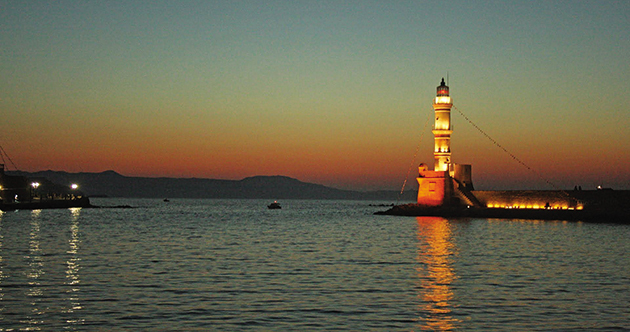 Το σήμα κατατεθέν των Χανίων, ο αιγυπτιακός φάρος, στέκεται εδώ και πέντε αιώνες στην είσοδο του λιμανιού, από το 1600, όταν οι Ενετοί τον κατασκεύασαν στον φυσικό βράχο για να λειτουργήσει ως πυρσός ανοιχτής φλόγας. Το 1839 οι Αιγύπτιοι (είχαν λάβει την Κρήτη ως δώρο από τους Τούρκους για τη βοήθειά τους στους διάφορους πολέμους) αναστήλωσαν τον φάρο και του έδωσαν τη σημερινή του μορφή, με τον πύργο να εδράζεται στην ενετική, τραπεζοειδή βάση. Με ύψος 21 μέτρα, ο φάρος είναι ορατός σε απόσταση 7 μιλίων.