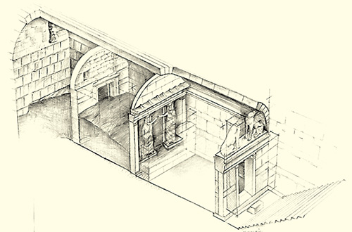 Μετά την απόφαση που πήραν οι επιστήμονες, η είσοδος στον τρίτο θάλαμο θα πραγματοποιηθεί από την είσοδο που υπάρχει και όχι από μία οπή στο πάνω μέρος του τρίτου διαφραγματικού τοίχου. Ετσι, πρώτα θα αφαιρεθεί η επιχωμάτωση στον δεύτερο χώρο, θα απομακρυνθεί το πεσμένο τμήμα του υπέρθυρου και θα υποστυλωθεί το θύρωμα μεταξύ δεύτερου και τρίτου χώρου, προτού επιχειρηθεί είσοδος στον τρίτο θάλαμο του μνημείου.