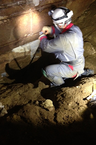 Τα συνεργεία συνέχιζαν χθες τις τεχνικές εργασίες μέσα στο μνημείο, προσπαθώντας να προετοιμάσουν το έδαφος για την πρόσβαση στον τρίτο χώρο του μνημείου, τοποθετώντας παράλληλα υποστυλώματα στους υπόλοιπους χώρους.
