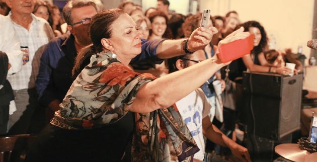 Και η Χαρούλα θέλει τη selfie της. Εξοικειωμένη με τα κινητά τηλέφωνα τελευταίας τεχνολογίας, η Αλεξίου τράβηξε μπόλικες φωτογραφίες στο 2ο Φεστιβάλ Βοτανικού «Κάτω από τις Γραμμές», όπου τραγούδησε κιόλας.