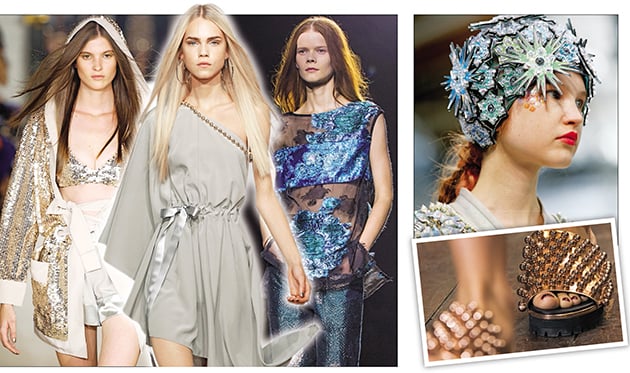 Μπορεί η διαφάνεια να απαιτεί τόλμη για να φορεθεί, όμως η λάμψη θέλει απλώς γοητεία! Εμφανίσεις που θα ζήλευαν οι pop stars, με όμορφα jackets, αλλά και πιο θηλυκά σύνολα, αποκτούν λαμπερές λεπτομέρειες και μεταμορφώνονται σε υπερπαραγωγές, κερδίζοντας τις εντυπώσεις. Ακόμη και μια απλή κορδέλα, που δίνει την αίσθηση αχτίδας φωτός, προσθέτει πόντους σε απλά, αλλά κομψά φορέματα.