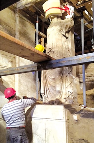 Τα συνεργεία που εργάζονται υπό τις οδηγίες των αρχαιολόγων ολοκλήρωσαν τις εργασίες αντιστήριξης βάζοντας υποστυλώματα στον πρώτο χώρο και ταυτόχρονα τοποθέτησαν οριζόντιες αντηρίδες στον δεύτερο, προκειμένου να προχωρήσει η αποχωμάτωση.
