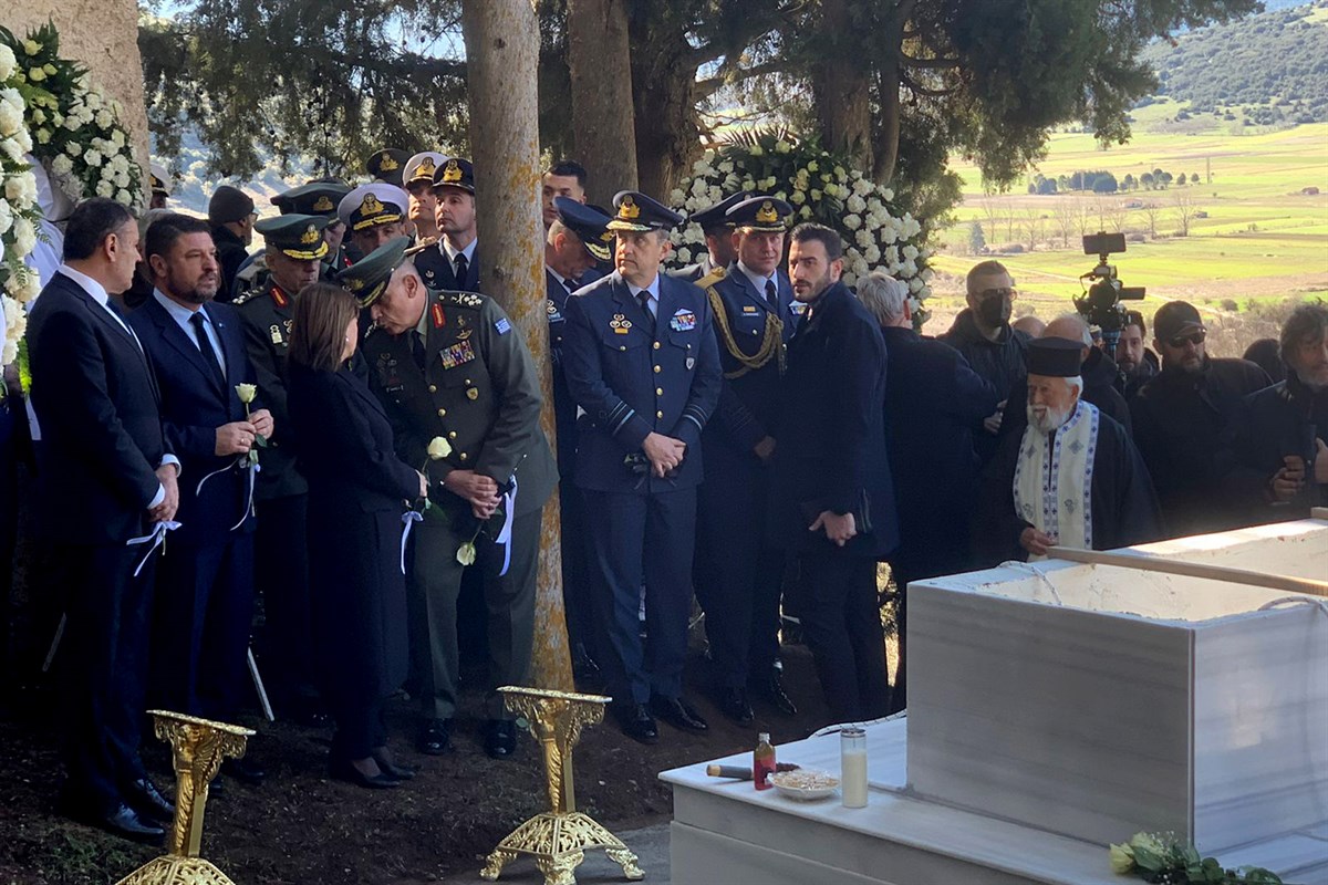 Η Πρόεδρος της Δημοκρατίας Κατερίνα Σακελλαροπούλου, ο πρωθυπουργός Κυριάκος Μητσοτάκης, ο υπουργός Εθνικής Άμυνας Νίκος Παναγιωτόπουλος, σύσσωμη η στρατιωτική ηγεσία των Ενόπλων Δυνάμεων και των Σωμάτων Ασφαλείας παρέστησαν στην εξόδιο ακολουθία και συνόδευσαν τον άτυχο σμηναγό στην τελευταία του κατοικία, μαζί με τους οικείους του, τους συναδέλφους του και πλήθος κόσμου, που ανέβηκαν στο ορεινό χωριό για να αποτίσουν φόρο τιμής στον ήρωά τους.