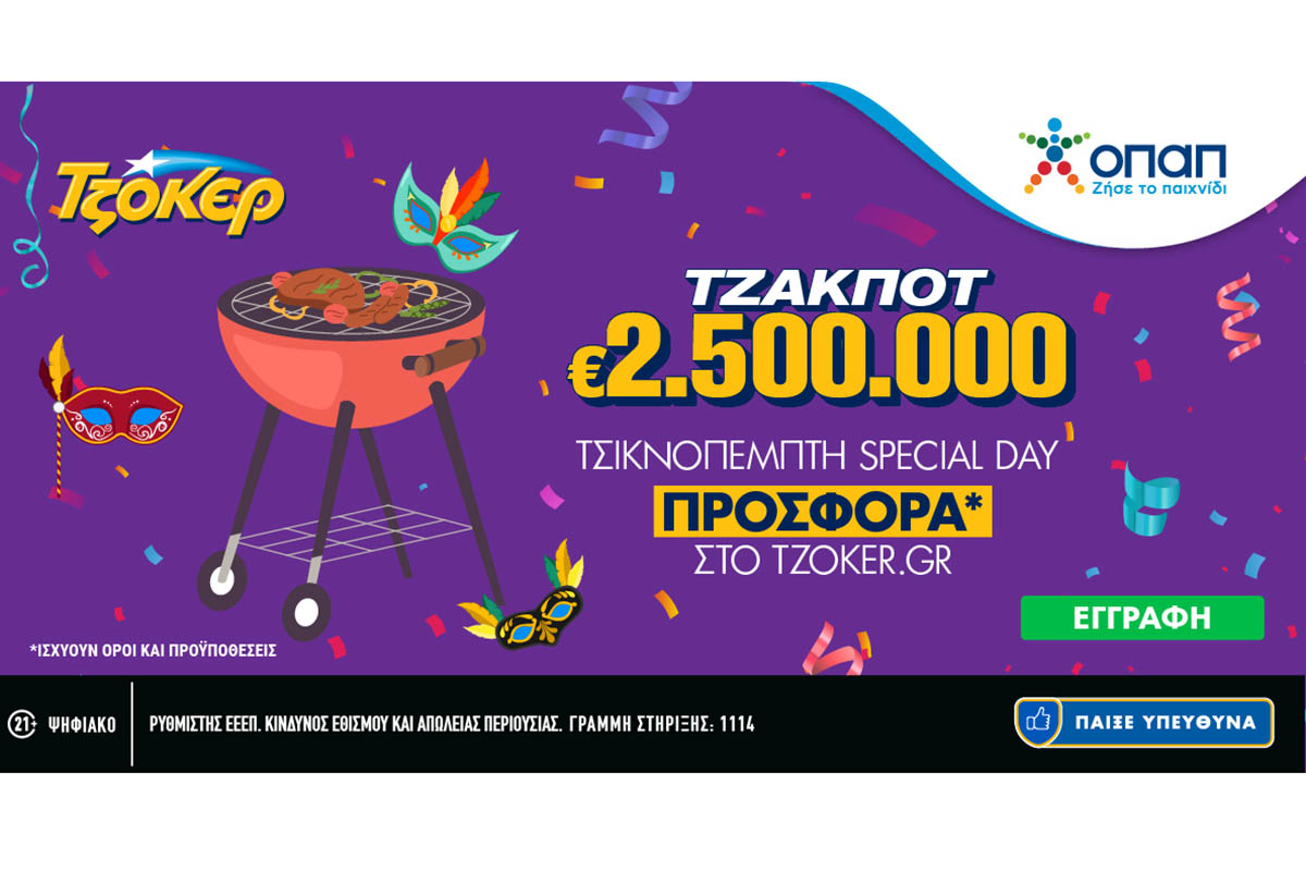 Για την προσφορά αυτή ισχύουν όροι και προϋποθέσεις και οι παίκτες μπορούν να μάθουν περισσότερα μπαίνοντας στο tzoker.gr ή στο tzoker app.