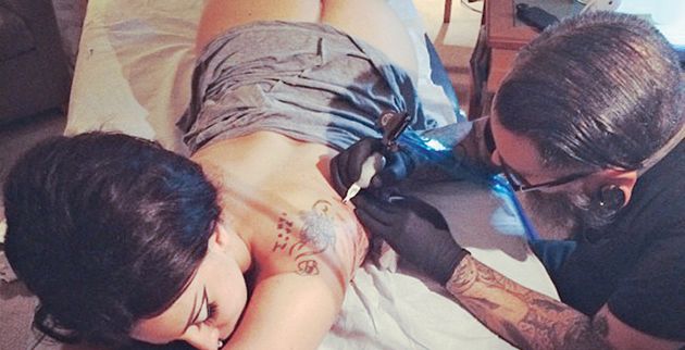 Εκεί αποφάσισε να «χτυπήσει» καινούργιο τατουάζ, (σ.σ.: ένα χέρι μάγισσας που απλώνεται απειλητικά) και επειδή το έκανε λίγο πιο κάτω από την ωμοπλάτη της, απαλλάχθηκε απ’ οτιδήποτε… περιττό φορούσε και αφέθηκε στα χέρια του καλλιτέχνη.