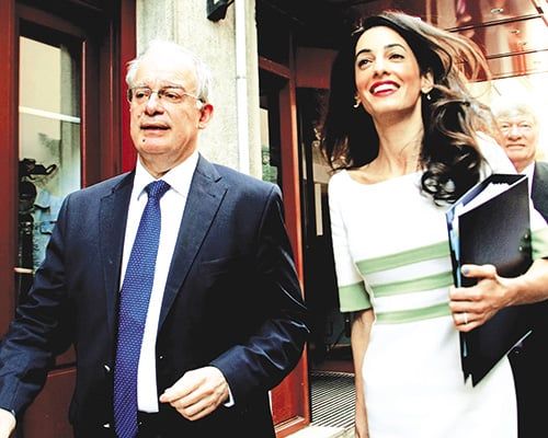 Η κυρία Κλούνεϊ διάβηκε χθες το μεσημέρι τις πύλες του υπουργείου κρατώντας σφιχτά έναν φάκελο που περιείχε τις νομικές προτάσεις που θα παρουσίαζε στον Κώστα Τασούλα. Μαζί της ήταν οι συνάδελφοί της Τζέφρι Ρόμπερτσον και Νόρμαν Πάλμερ, αλλά και ο πρόεδρος της διεθνούς επιτροπής για την επανένωση των Γλυπτών, Ντέιβιντ Χιλ. Η γοητευτική δικηγόρος βρέθηκε στην οδό Μπουμπουλίνας στις 12.10 το μεσημέρι, μπήκε στο γραφείο του υπουργού και μίλησε για λίγο μαζί του για τα ελληνικά νησιά, τα οποία θέλει λίαν συντόμως να επισκεφθεί (απέφυγε να απαντήσει αν ήρθε το καλοκαίρι ινκόγκνιτο με τον Τζορτζ στη Σκιάθο), προτού ξεκινήσει να αναλύει τις προτάσεις της για τη νομική διεκδίκηση των Γλυπτών.