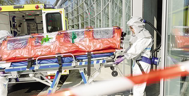 Τα μέτρα για την πρόληψη διασποράς της λοίμωξης είναι αυστηρά. Ο ασθενής με υποψία αιμορραγικού πυρετού Εμπολα τίθεται σε αυστηρή απομόνωση σε μονόκλινο δωμάτιο. Οποιοσδήποτε μπαίνει στον χώρο της καραντίνας φοράει ολόσωμη αδιάβροχη στολή μιας χρήσης, χειρουργική μάσκα ή μάσκα υψηλής αναπνευστικής προστασίας, γυαλιά ή ασπίδα προσώπου και ένα ή δύο ζευγάρια γάντια! Ο προστατευτικός εξοπλισμός αφαιρείται και μετά καταστρέφεται.