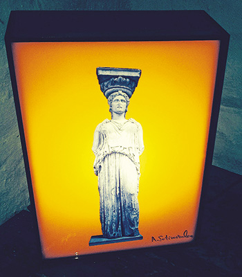 «Μέσω της γκαλερί όπου παρουσίασα πέρυσι τη δουλειά μου δόθηκε το έργο στο γραφείο του πρωθυπουργού. Το πήρε εν συνεχεία η σύμβουλός του Λία Δανιόλου. Απ’ όσο γνωρίζω, άρεσε πάρα πολύ το έργο και στον ίδιο τον πρωθυπουργό. Ελπίζω να άρεσε και στην ίδια, αλλά και στον σύζυγό της Τζορτζ Κλούνεϊ. Εκείνο που με ενδιαφέρει πάνω απ’ όλα ως Ελληνίδα είναι να επιστρέψει η Καρυάτιδα στο σπίτι της, στην Ελλάδα». Οπως εξήγησε η καλλιτέχνιδα στο light box, «η Καρυάτιδα αυτή είναι μπλε χρώματος. Οι διαστάσεις της είναι 30×22. Εγώ προσπάθησα να τη φέρω και πάλι πίσω με τη δημιουργία μου».