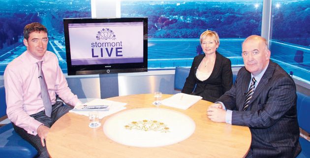 Η πολιτική ανταποκρίτρια του BBC στη Β. Ιρλανδία Μαρτίνα Πέρντι στο στούντιο των ειδήσεων, ανάμεσα σε συναδέλφους της