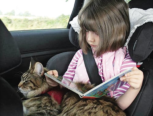 Οταν η οικογένεια πηγαίνει βόλτα με το αυτοκίνητο, η Θούλα κάθεται στα πόδια της Αϊρις και είναι παραπάνω από χαρούμενη όταν της βάζουν το κόκκινο περιλαίμιο για να τη βγάλουν να περπατήσει με λουρί.