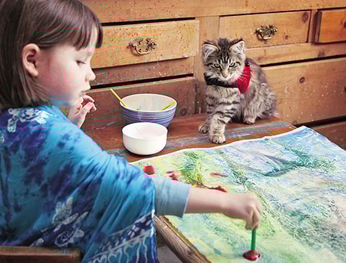 Οταν η Αϊρις πιάνει τα πινέλα της, δίνει την εντολή στη Θούλα να καθίσει κι εκείνη πηδάει αμέσως στο τραπέζι. «Κοιτάζει την Αϊρις με μεγάλο ενδιαφέρον. Κάποιες φορές θέλει να παίξει με τα πινέλα, όμως σε γενικές γραμμές την παρατηρεί υπομονετικά» λέει η μητέρα της.