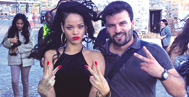 «Την πέτυχα στο χωριό Πλάκα, απέναντι από τη Σπιναλόγκα. Ημουν μόνο εγώ, οι ντόπιοι και η Ριάνα. Η ίδια με είδε ότι τη φωτογράφιζα από μακριά και το είπε στους μπράβους της, οι οποίοι με πλησίασαν με σκοπό να μου πάρουν τη μηχανή και να με πετάξουν στη θάλασσα». Ο Νίκος αντέδρασε έντονα. «Τους είπα πως είμαι ντόπιος και ότι η φωτογραφία είναι το χόμπι μου. Δεν τους έπεισα όμως και πέρασα αμέσως στην… επίθεση, ισχυριζόμενος πως ο πατέρας μου είναι αστυνομικός. “Θέλετε να τον φωνάξω να λυθεί το θέμα;” τους ρώτησα. Εκείνη τη στιγμή όμως τους κάλεσε η Ριάνα. Τους είπε “μην τσακώνεστε με τον κόσμο”. Ετσι την πλησίασα περισσότερο και τη φωτογράφισα χωρίς πρόβλημα. Με τα πολλά της ζήτησα να βγούμε και μαζί μια φωτογραφία κι εκείνη δέχτηκε, μάλλον για να με ξεφορτωθεί. Πάντως, αυτή η γυναίκα είναι ένα όνειρο από κοντά. Ελκυστική, παιχνιδιάρα και τσαχπίνα. Τα έχει όλα».