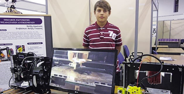 Ενας οικιακός εκτυπωτής με τη δυνατότητα να κατασκευάζει τρισδιάστατα αντικείμενα έκλεψε την παράσταση στο 5ο Πανελλαδικό Φεστιβάλ Βιομηχανικής Πληροφορικής, αποσπώντας το 2ο βραβείο της φετινής διοργάνωσης. Ωστόσο το πιο εντυπωσιακό είναι ότι δημιουργός της υπερσύγχρονης συσκευής δεν είναι κάποιος επαγγελματίας μηχανικός ή ομάδα φοιτητών, αλλά ο μαθητής της Γ’ Γυμνασίου Δημήτρης Χατζής! Ο ταλαντούχος 14χρονος κέρδισε τον θαυμασμό και το παρατεταμένο χειροκρότημα των κριτών και του κοινού κατά την ανακοίνωση των αποτελεσμάτων του διαγωνισμού καινοτομίας που πραγματοποιήθηκε στη συνεδριακή αίθουσα του εκθεσιακού Κέντρου «Απόστολος Μαρδύρης» στη Νέα Καρβάλη. Και ασφαλώς όχι άδικα, καθώς ο μαθητής του 6ου Γυμνασίου Καβάλας κατασκεύασε ένα πολύ «προχωρημένο» μηχάνημα, που απαιτεί ιδιαίτερες γνώσεις πληροφορικής, ρομποτικής, αυτοματισμού κ.λπ.