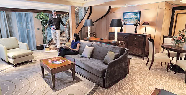 Αυτό το διάστημα το κρουαζιερόπλοιο προετοιμάζεται για τον γύρο του κόσμου, για ταξίδι διάρκειας 113 ημερών, που θα χαρίσει στους εκλεκτούς πελάτες του την ευκαιρία να επισκεφτούν τη Μέση Ανατολή, την Αυστραλία, την Ασία, ακόμα και τη Νότια Αφρική. Οι πέντε που επιθυμούν να… κουνήσουν το μαντίλι από το μπαλκόνι των Grand Duplex Suites θα πρέπει πρώτα να δώσουν 154.000 ευρώ!