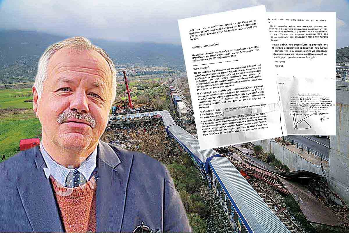 Οι πληροφορίες μας λένε ότι ένα μέλος ενάγων ή εναγόμενος είναι η σταθμάρχης Λάρισας, η οποία και γνωρίζουμε ότι έδωσε κατάθεση ενώπιόν σας» καταγγέλλει στην αναφορά του ο δικηγόρος, ζητώντας να ερευνηθεί η υπόθεση σε σχέση με τις ευθύνες του προφυλακισμένου σταθμάρχη που είχε βάρδια τη μοιραία νύχτα και δεν είδε στον τοπικό πίνακα ότι τα δύο τρένα κατευθύνονταν αντίθετα στην ίδια γραμμή…