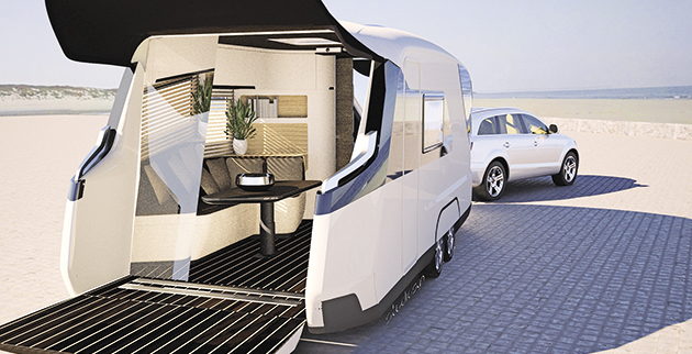 Η εξωτερική εμφάνιση του «Caravisio» μαρτυρά πόσο hi-tech είναι εσωτερικά. Σε αποχρώσεις του καφέ και του μπεζ, με τον led φωτισμό του να τονίζει ακόμα περισσότερο τις φίνες γραμμές της, η τροχοβίλα αυτή μοιάζει με στούντιο του μέλλοντος. Τα κρεβάτια είναι έτσι σχεδιασμένα ώστε να λειτουργούν ως δύο μονά ή ως ένα υπέρδιπλο.