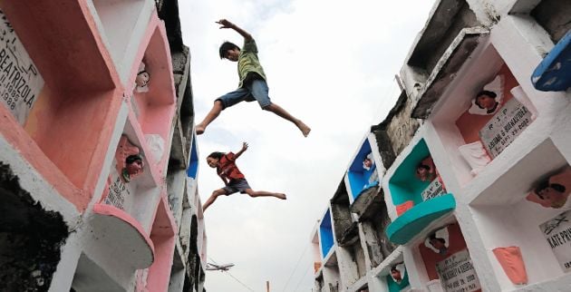 Σε ένα είδος μακάβριου παρκούρ επιδίδονται παιδιά στις Φιλιππίνες, που πηδούν από τάφο σε τάφο στο δημόσιο κοιμητήριο του Παρανάκ, στη Μανίλα.