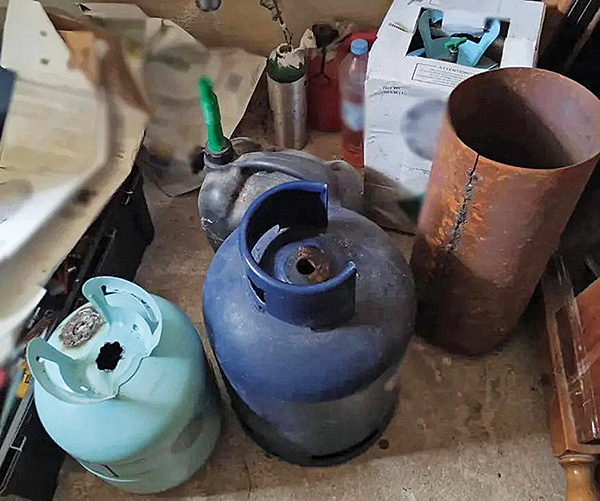 Από τις έρευνες στο σπίτι του βρέθηκαν και κατασχέθηκαν πλήθος αυτοσχέδιων εκρηκτικών μηχανισμών, μεγάλη ποσότητα αυτοσχέδιων εκρηκτικών υλών, εξαρτήματα, μηχανήματα, καθώς και υλικά πρόσφορα για την κατασκευή αυτοσχέδιων εκρηκτικών μηχανισμών, οκτώ καραμπίνες, αυτοσχέδια φυσίγγια, χιλιάδες κυνηγετικά φυσίγγια, πλήθος υλικού γομώσεως φυσιγγίων, κροτίδες, υπολογιστής και εκτυπωτής, φεϊγβολάν, 18 συσκευές κινητού τηλεφώνου μέσα σε βαλίτσα, η περούκα και τα ρούχα που χρησιμοποιήθηκαν κατά την τέλεση βομβιστικής επίθεσης.