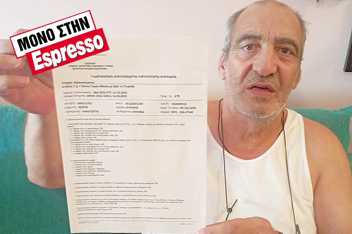 «Με δεδομένο ότι το Κέντρο Πιστοποίησης Αναπηρίας (ΚΕΠΑ) μετά τους απαραίτητους ελέγχους μου είχε βγάλει αναπηρία σε ποσοστό 67%, τόσα χρόνια δεν πλήρωνα τις εξετάσεις στα ιδιωτικά διαγνωστικά κέντρα. Εκλεινα ραντεβού με τον ογκολόγο μου στο δημόσιο νοσοκομείο για τις θεραπείες μου και λίγες ημέρες νωρίτερα έκανα τις εξετάσεις, για να τις έχω μαζί μου. Πριν από λίγο καιρό επανέλαβα τον έλεγχο από το ΚΕΠΑ, το οποίο μου έβγαλε αναπηρία σε ποσοστό 74%». Οπως υποστηρίζει ο ίδιος, από την αρχή του έτους άρχισαν στα διαγνωστικά κέντρα να του ζητούν χρηματικό αντίτιμο για τις εξετάσεις που κάνει.