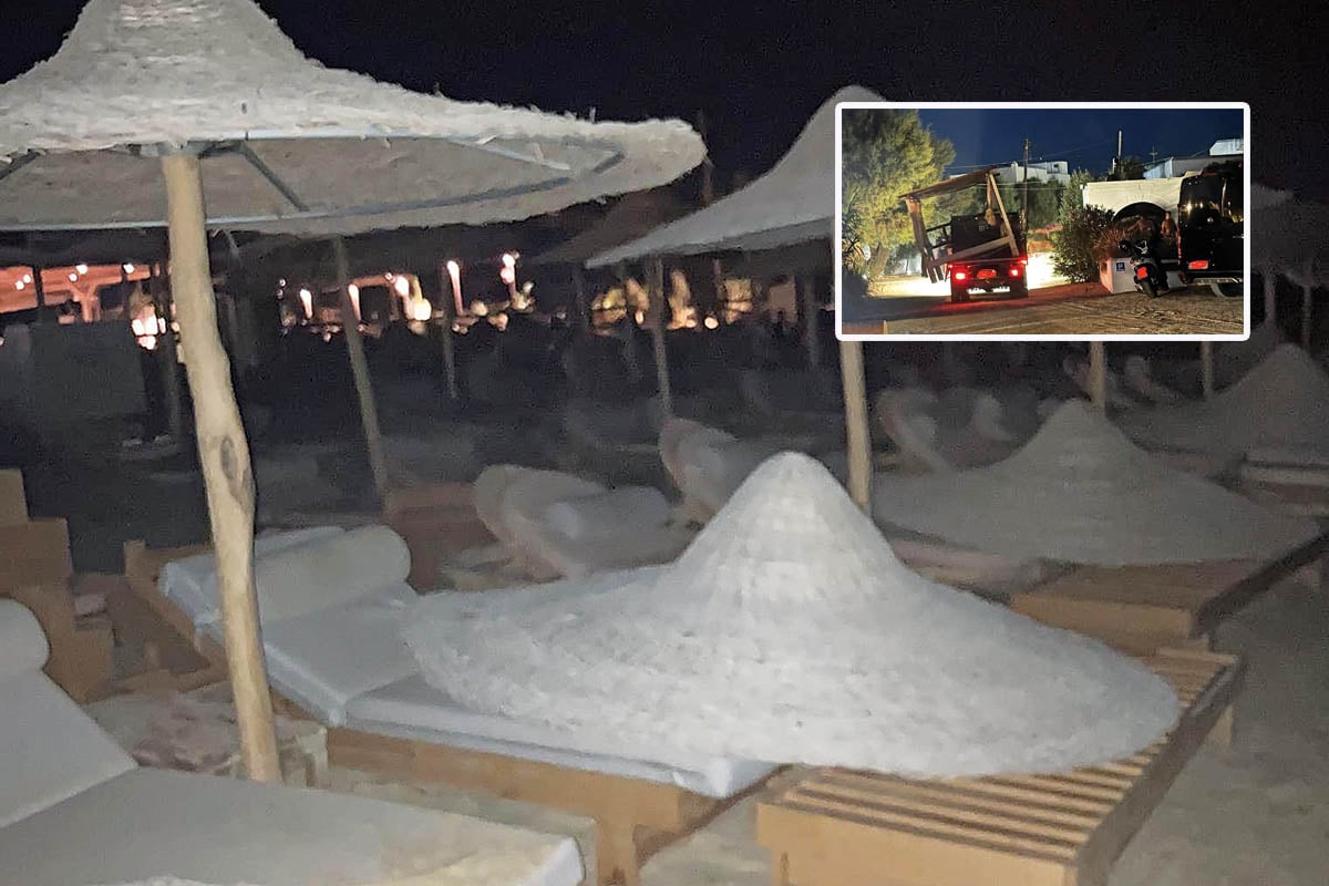 «Χθες το βράδυ, περίπου στη μία τα ξημερώματα κάναμε βόλτα στην παραλία της Πλάκας και βλέπαμε κόσμο με τρυπάνια να βιδώνει στη θέση τους ομπρέλες. Με το φως του ήλιου οι εργασίες συνεχίζονταν κανονικά» ανέφερε χθες σε δηλώσεις της η Γεωργία Παπαδοπούλου, σταθερή επισκέπτρια του νησιού.