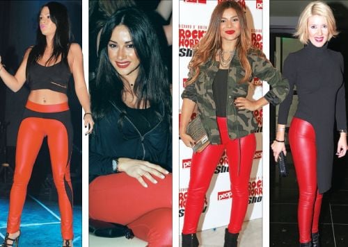 «Ρίξε κόκκινο στη νύχτα» λέει το τραγούδι και οι επώνυμες κυρίες είπαν να το κάνουν πράξη βασιζόμενες σε ένα must κομμάτι του φετινού χειμώνα, το κόκκινο δερμάτινο παντελόνι.