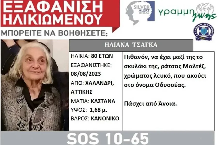 Εάν γνωρίζετε κάτι επικοινωνήστε με την υπηρεσία Silver Alert, όλο το 24ωρο, στην Εθνική Γραμμή SOS 1065.